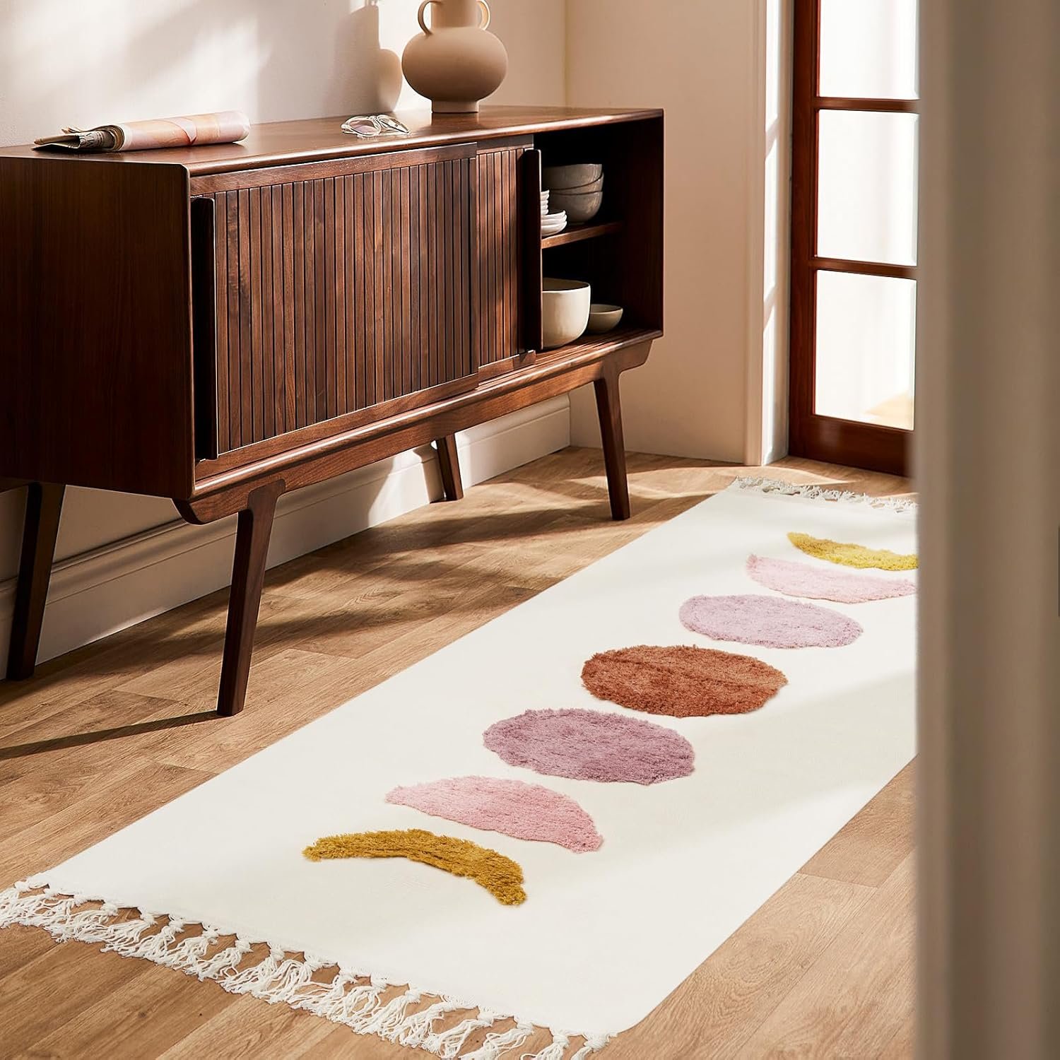 - 【Easy to Clean】This hall rug is machine washable, making it convenient for busy households with pets or children. Wash in cold water (avoid bleach) and hang dry. Use a vacuum without a beater bar for daily maintenance.